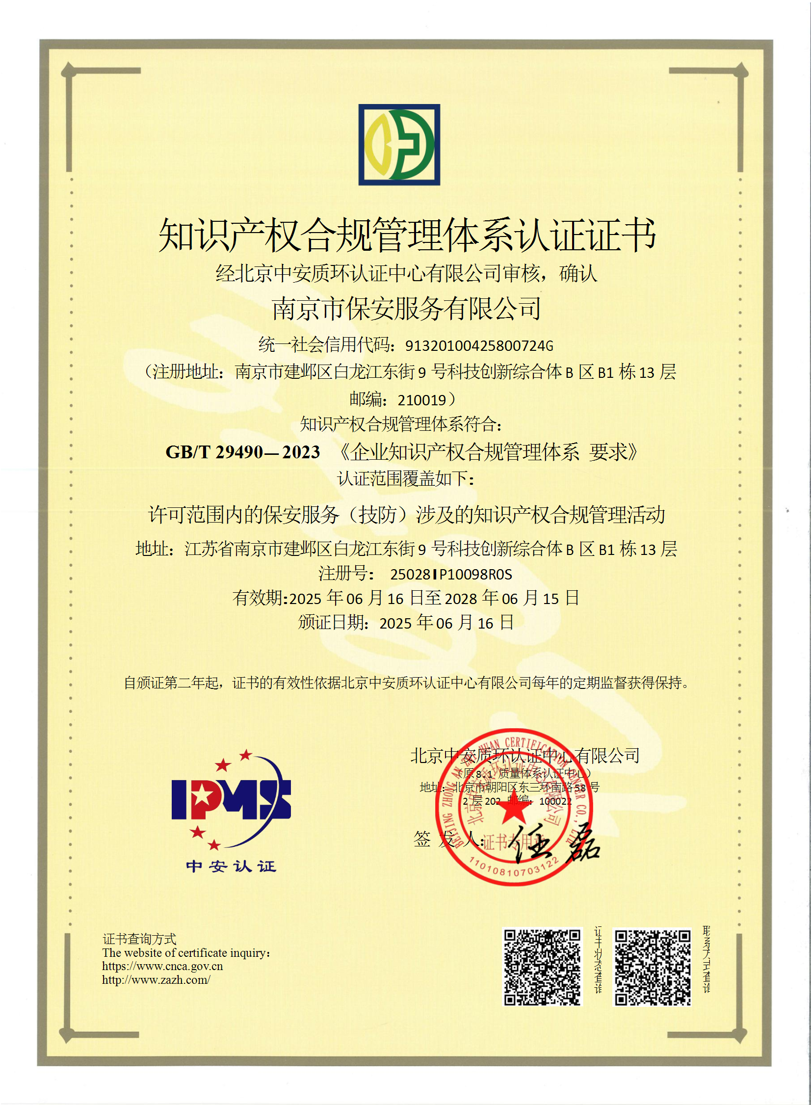 祝賀:南京市保安服務(wù)總公司通過企業(yè)誠信管理體系認(rèn)證和企業(yè)社會(huì)責(zé)任管理體系認(rèn)證